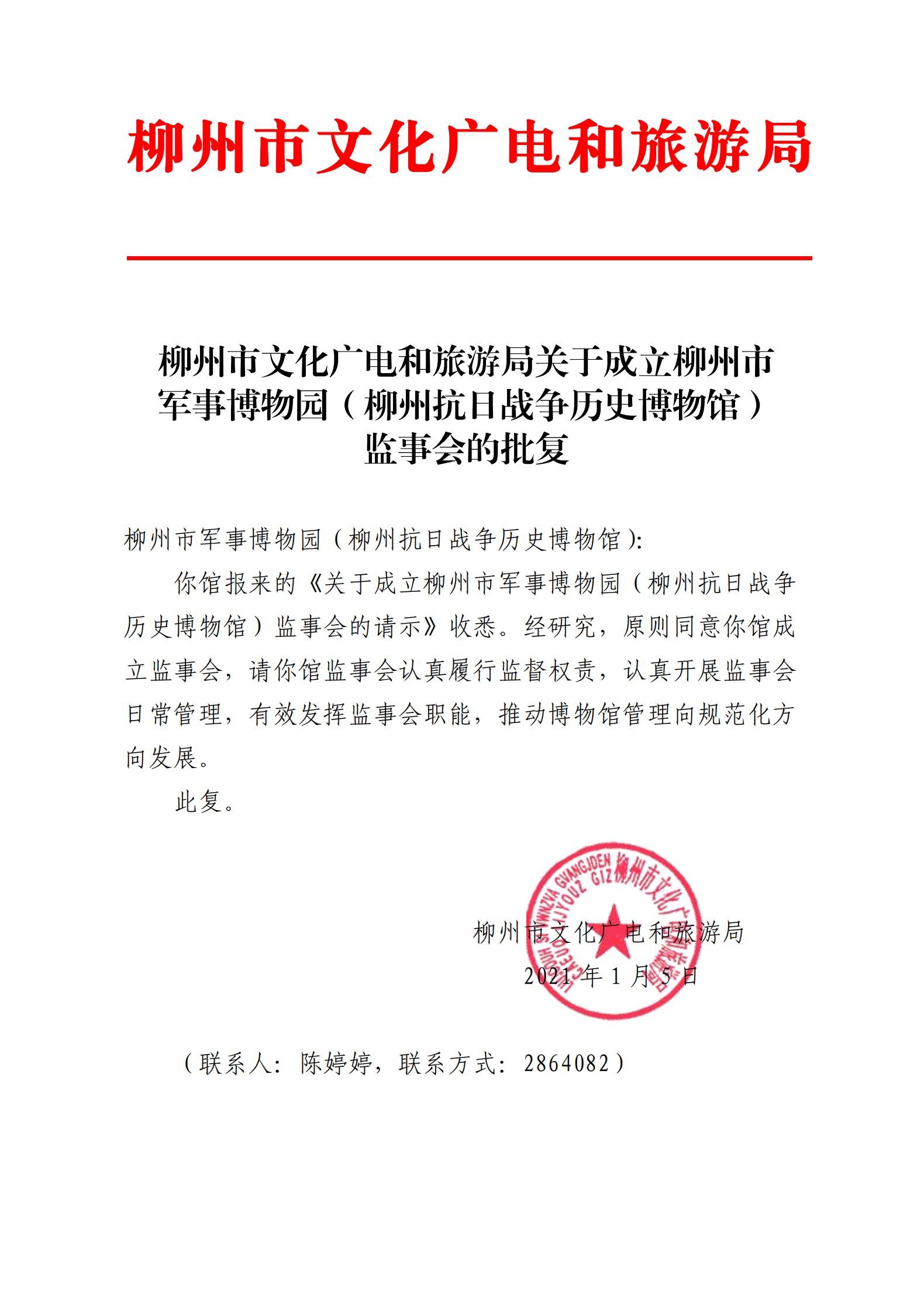 柳州市文化广电和旅游局关于成立柳州市军事博物园(柳州抗日战争历史博物馆)监事会的批复